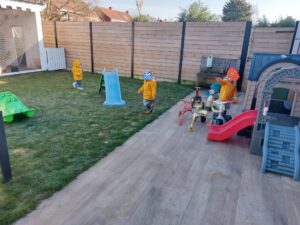Hier wordt er zo veel mogelijk buiten gespeeld of we gaan samen wandelen, dus graag ook een jasje en mutsje voorzien. (Ook wanneer het met de auto niet nodig is).